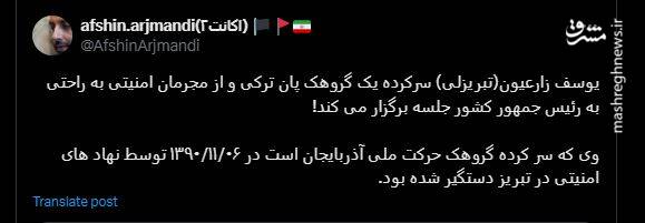 درباره اطلاع رئیسجمهور از هویت این فرد، میتوان چند گمانهزنی داشت؛ اول اینکه پزشکیان از هویت او مطلع نبوده که همین عدم اطلاع هم عذر موجهی نیست. چون نشان میدهد پزشکیان به اعتماد کسانی از دفتر خود این دیدار را پذیرفته که همین دیدار نشان میدهد قابل اعتماد نبودهاند. اگر هم پزشکیان میدانسته در حال دیدار با چه کسی است که مسئلهای قابل پیگیری خواهد بود زیرا که رئیسجمهور باید نفر اول در دفاع از تمامیت ارضی کشور باشد، نه آنکه کسانی را به حضور بپذیرد که با فحاشی و الفاظ رکیک در فضای عمومی توییتر نسبت به مخالفان تجزیه ایران یا غیر آذریها صحبت میکند.»