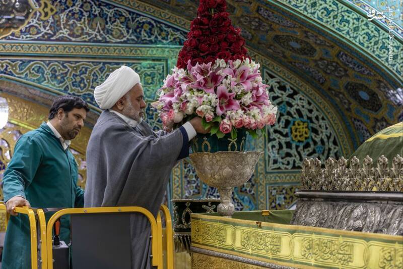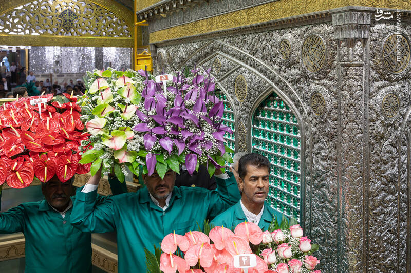 عکس/ گلآرایی ضریح نورانی علی ابن موسی الرضا(ع)