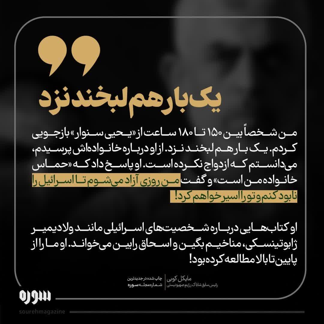 به گزارش شهدای ایران: ۳ نقل قول از شهید یحیی سنوار و دشمنانش که احتمالا نخواندهاید را اینجا بخوانید.