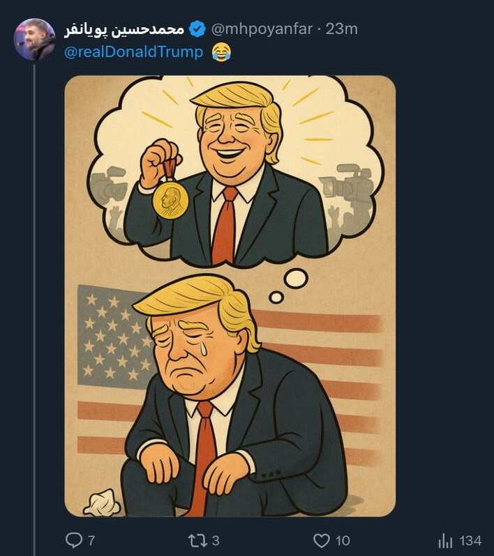 واکنش پویانفر به ناکامی نوبلی ترامپ