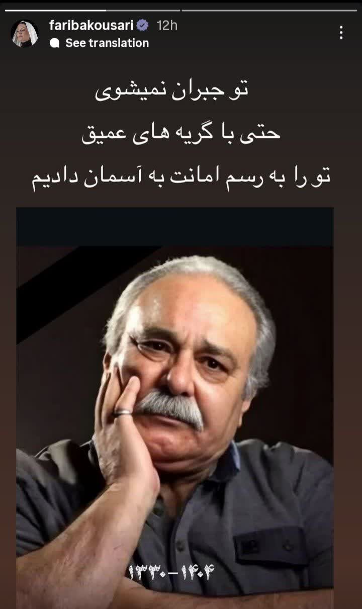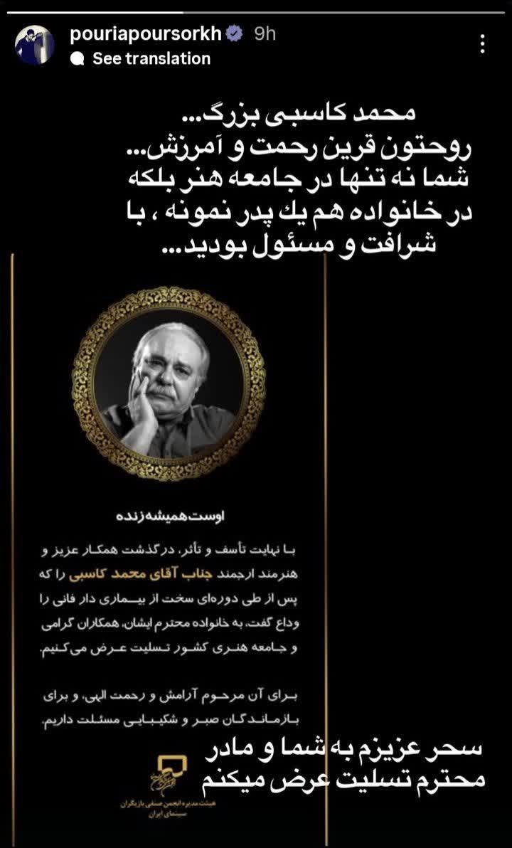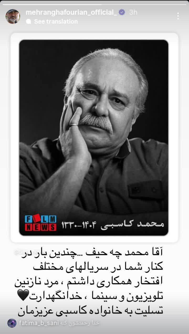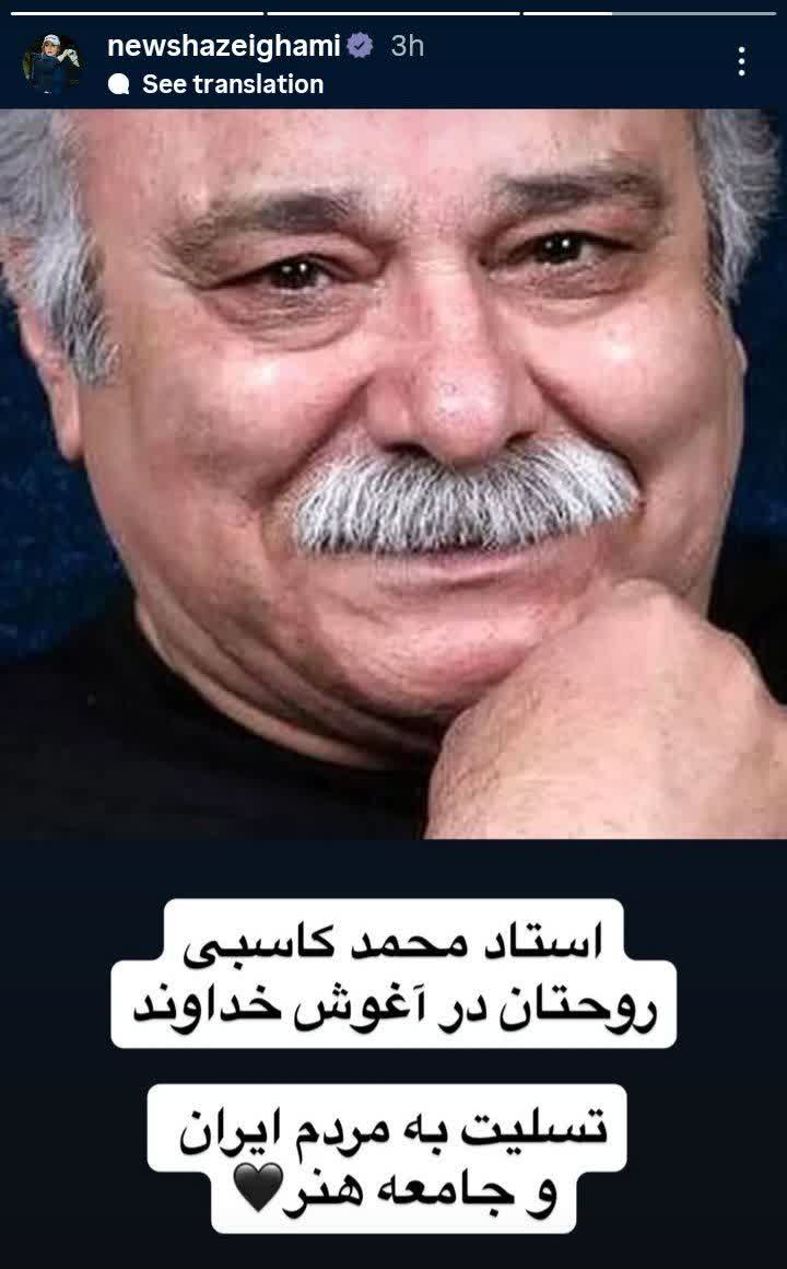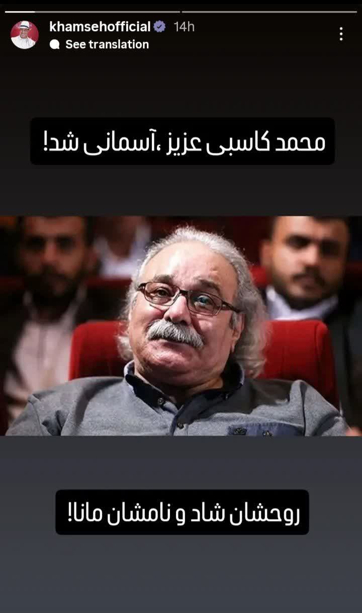 به گزارش شهدای ایران: هنرمندان در استوری به درگذشت استاد محمد کاسبی بازیگر سینما و تلویزیون واکنش نشان دادند.