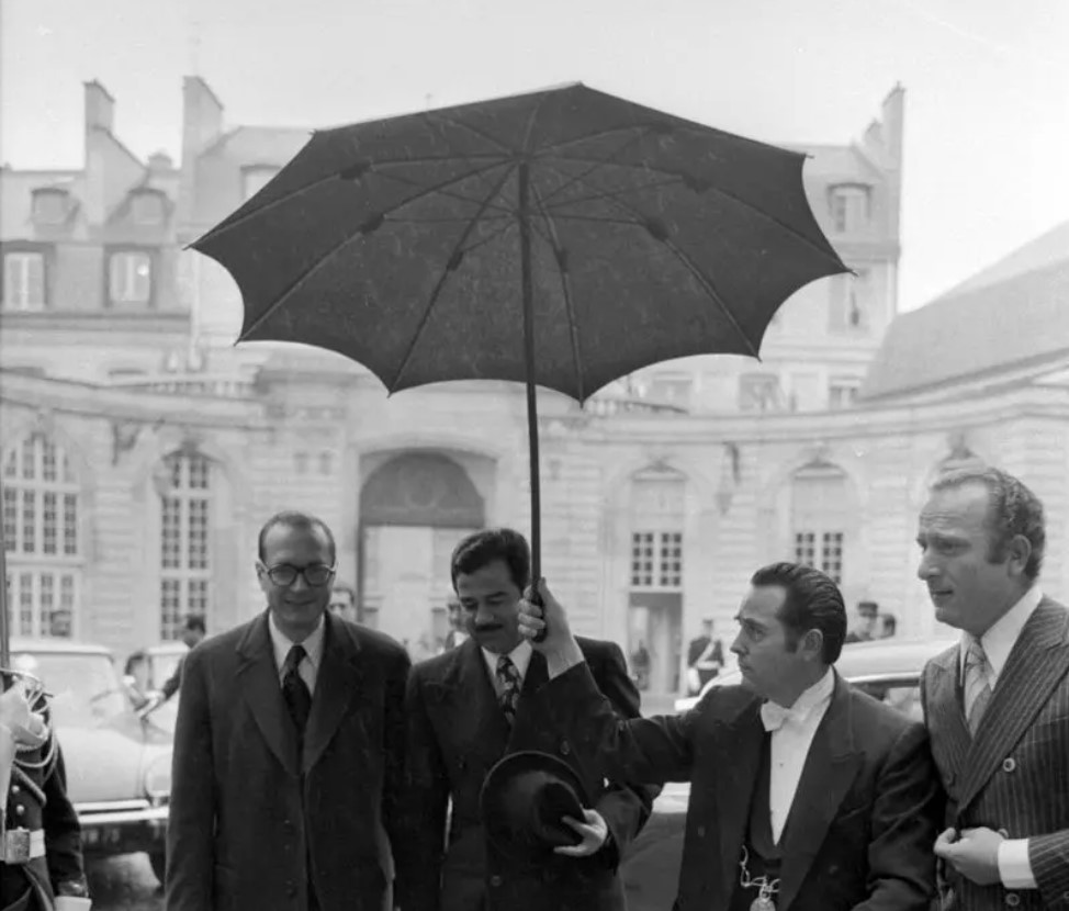 به گزارش شهدای ایران: تصویری قدیمی از صدام حسین به همراه ژاک شیراک، نخست وزیر فرنسه را در ۳ مارس ۱۹۷۵ و حال حرکت به سمت هتل ماتینیون پاریس خواهید دید.