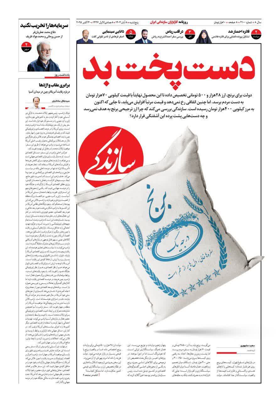 دولت برای برنج، ارز ۲۸ هزار و ۵۰۰ تومانی تخصیص داده تا این محصول نهایتاً با قیمت کیلویی ۷۰ هزار تومان به دست مردم برسد، اما چنین اتفاقی رخ نمیدهد و قیمت مرتباً افزایش مییابد، تا جایی که اکنون به مرز کیلویی ۴۰۰ هزار تومان رسیده است.
