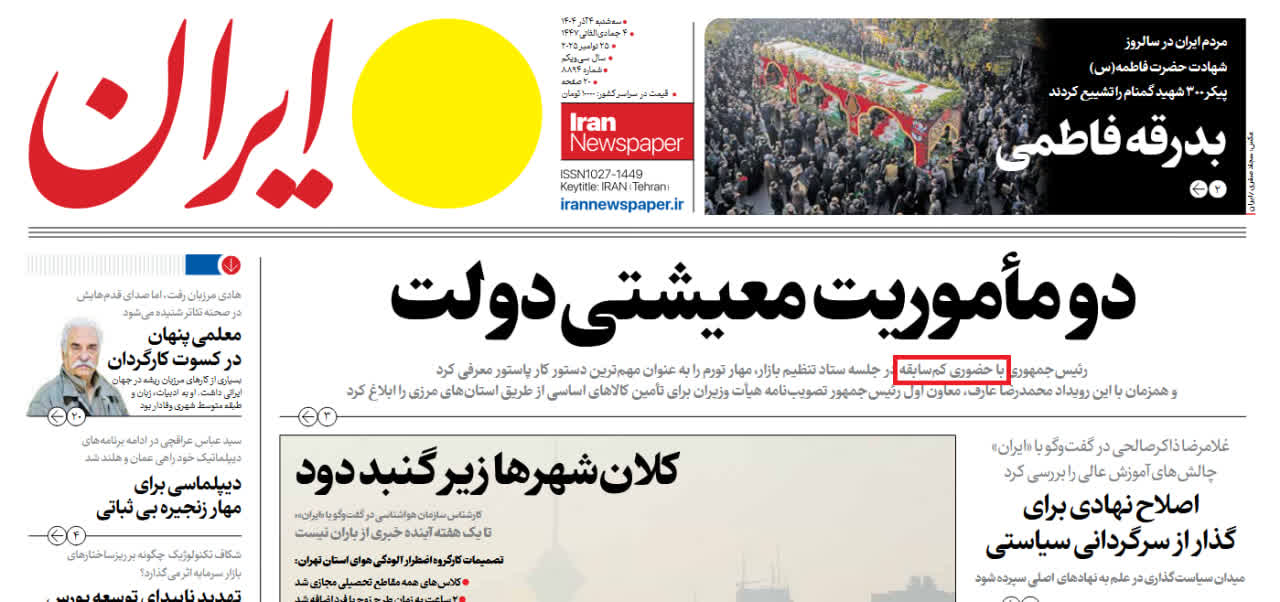 به گزارش شهدای ایران: روزنامه ایران: رئیس جمهور به طور کم سابقهای در جلسه ستاد تنظیم بازار شرکت کرد!
