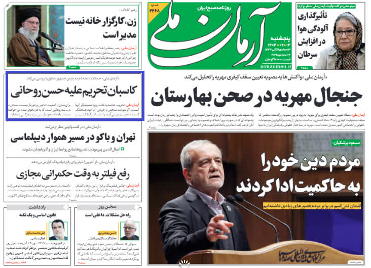 به گزارش شهدای ایران ، روزنامه آرمان در یکی از تیترهای صفحه نخست شماره امروز خود منتقدان سخنرانی ضدملی حسن روحانی را «کاسبان تحریم» نامیده است!