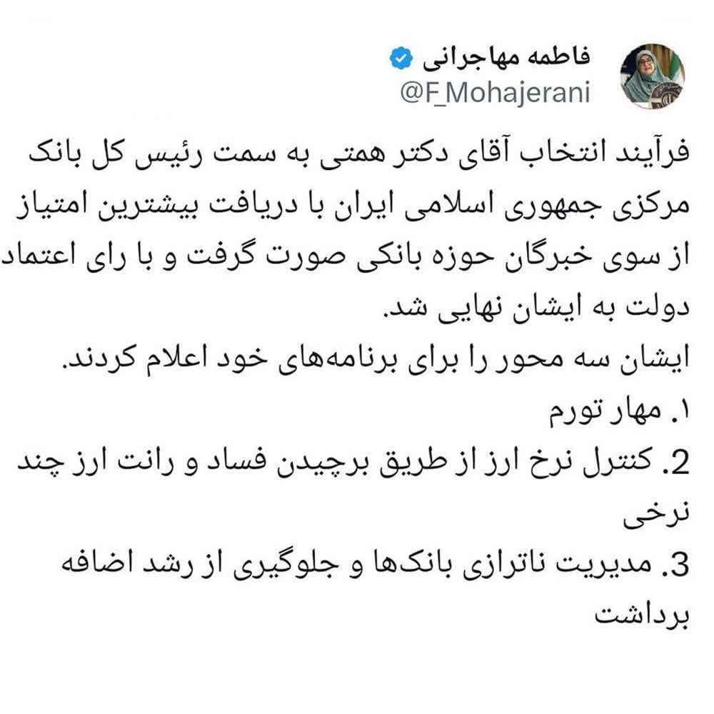به گزارش شهدای ایران: سخنگوی دولت نوشت: فرآیند انتخاب آقای همتی به سمت رئیس کل بانک مرکزی جمهوری اسلامی ایران با دریافت بیشترین امتیاز از سوی خبرگان حوزه بانکی صورت گرفت و با رای اعتماد دولت به ایشان نهایی شد.