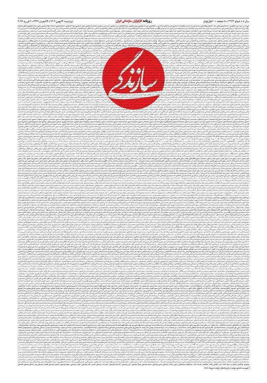 به گزارش شهدای ایران: صفحه نخست روزنامه اصلاح طلب سازندگی