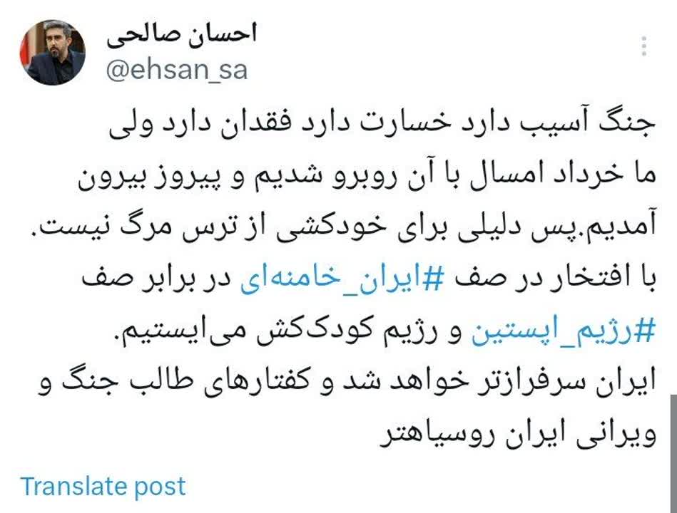 به گزارش شهدای ایران کاربر توییتر نوشت: با افتخار در صف ایران خامنهای در برابر صف رژیم اپستین و رژیم کودککش میایستیم.