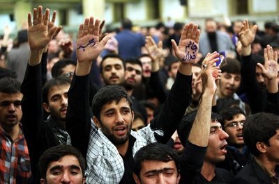 مداح دیگری، نوحهای را به فارسی و آذری میخواند که هر بندش به «هیهات منالذله» ختم میشود. مداح دیگری که به نظر مجری مراسم هم هست چند رباعی انقلابی میخواند که جمعیت فریادزنان «احسنت» میگویند: «با فتنهگران کوفه وقتش برسد/ نه صلح حسن که کربلایی داریم». و بعد از حاضران میخواهد که نوحهای را که روی تراکتها بود، تمرین کنند تا وقتی حضرت آقا آمدند برایشان دستهجمعی بخوانند.