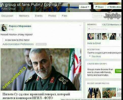 یکی از کلوب های طرفداران پوتین با اشاره به نقش حاج قاسم در آزادی خلبان دوم روسی نوشت: به این قهرمان تعظیم کنید.