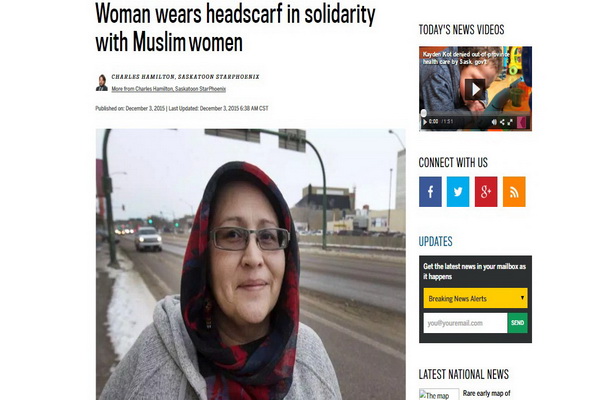 یک زن غیر مسلمان کانادایی برای حمایت و همبستگی با مسلمانان محجبه شد.