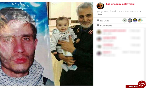 تصاویر بسیاری از حمایت های سردار قاسم سلیمانی فرمانده نیروهای قدس سپاه پاسداران از فرزندان شهدای مدافع حرم را در فضای مجازی دیده ایم.این بار هم تصویری از فرزند شهید اکبر شهریاری در آغوش گرم و پدرانه سردار سلیمانی در صفحه اینستاگرام حامیان سردار به اشتراک گذاشته شده است.