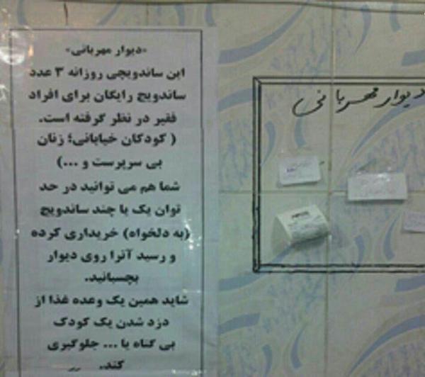 "دیوار مهربانی" جالب در یک ساندویچی +عکس