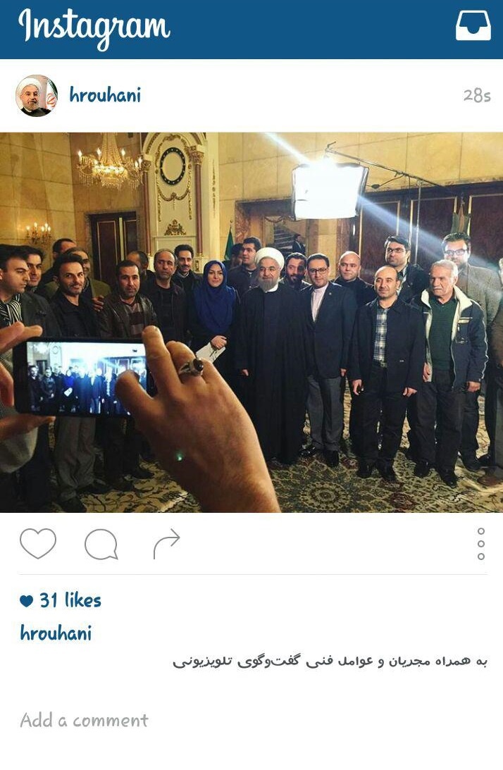 رییس جمهور شب گذشته عکس یادگاری خود با مجریان و عوامل فنی گفت و گوی زنده تلویزیونی را در صفحه اینستاگرامش منتشر کرد.