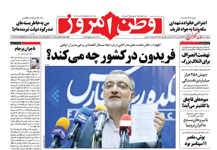 تیتر روزنامه وطن امروز درباره "حسین فریدون" +عکس