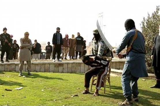 به گزارش شهدای ایران به نقل از دیلی میل، عناصر گروه تروریستی داعش یک اسیر را در انظار عمومی به صندلی بستند و با شمشیر 3 فوتی (91 سانتی متر) وی را گردن زدند. این اسیر در رقه، مرکز داعش در سوریه مقابل دیدگان دهها نفر حتی کودکان اعدام شد.