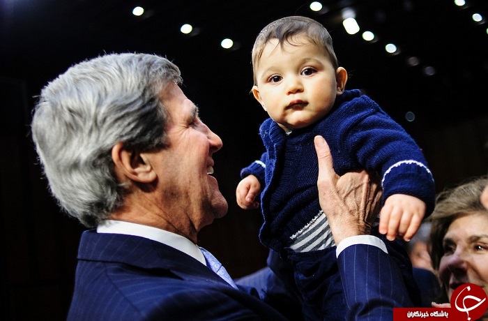 "نوه ایرانی" جان کری در آغوش پدر بزرگش + عکس