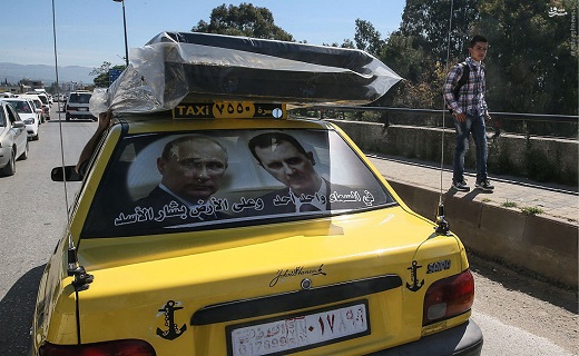 تصاویر پوتین و بشار اسد روسای جمهور روسیه و سوریه پشت یک تاکسی پراید در سوریه را در زیر مشاهده می کنید.
