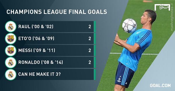 در حال حاضر رونالدو، رائول، مسی و اتوئو موفق به گلزنی در دو فینال شده اند. رونالدو اولین گلش را در فینال سال 2008 با پیراهن یونایتد به چلسی زد؛ دیداری که در آن یونایتد در پنالتی ها برنده و قهرمان شد. فینال سال 2009، رونالدو در شکست مقابل بارسلونا نتوانست گلزنی کند اما سال 2014 با پیراهن رئال موفق به زدن گل چهارم به اتلتیکو شد. بدین ترتیب رونالدو روز شنبه می تواند با زدن یک گل به اتلتی، صاحب رکوردی ویژه شود.