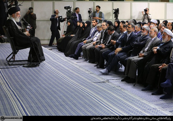 حضرت آیت الله خامنهای در همین زمینه به قضیه مذاکرات هستهای اشاره و خاطرنشان کردند: امریکاییها اعم از دولت، کنگره و کاندیداهای ریاست جمهوری آینده، مدام زیادهخواهی و تهدید میکنند و مواضع و تهدیدهای آنها در مقطع فعلی همچون دوره قبل از توافق است و نباید در مقابل این گستاخی ها ساکت ماند.