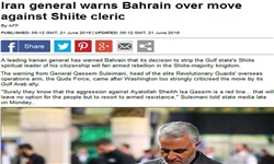 در ادامه گزارش میخوانیم: «یک ژنرال ارشد ایرانی به بحرین هشدار داد که لغو تابعیت رهبر معنوی شیعیان این کشور سبب شورش مسلحانه در این پادشاهی با اکثریت شیعیان خواهد شد».