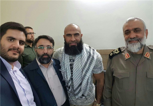 عکس یادگاری ابوعزرائیل در کنار سردار نقدی، رئیس سازمان بسیج مستضعفین در حاشیه همایش جهادگران رضوی را مشاهده میکنید.