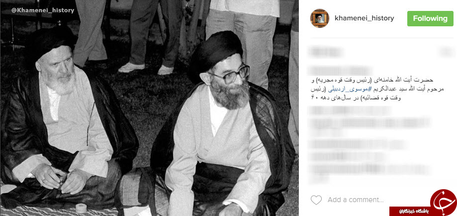 صفحه اینستاگرام منتسب به رهبر معظم انقلاب عکسی یادگاری از ایشان در کنار مرحوم آيت الله سید عبدالکریم موسوی اردبیلی منتشر کرد.