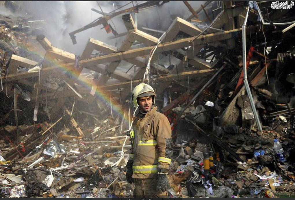 "رنگین کمان" در میان آوارهای پلاسکو +عکس