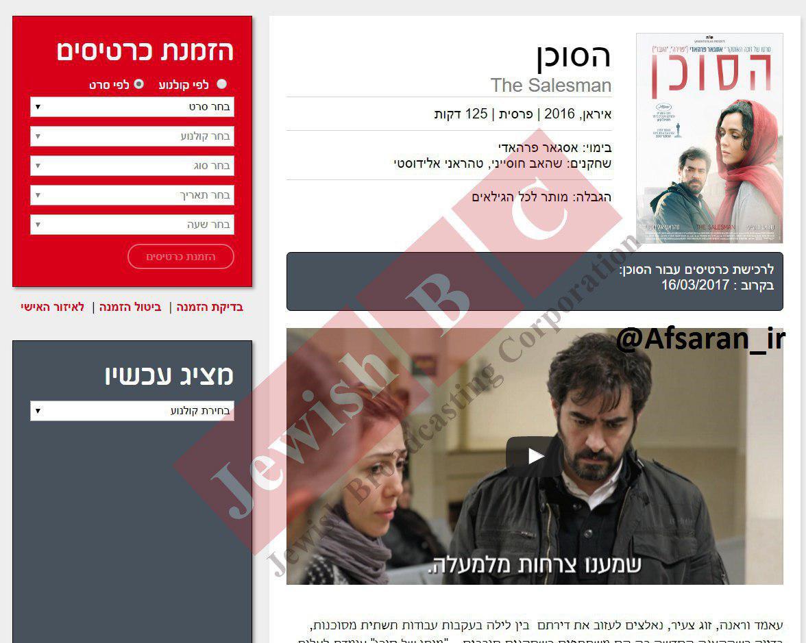 به گزارش شهدای ایران؛ پایگاه خبری jewishbc ، نوشت: از روز 16 مارس 2017 پیش فروش بلیط فیلم فروشنده در سایت lev اسرائیل آغاز خواهد شد .