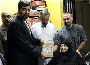 جنوب لبنان دیدار و قرآن اهدایی مقام معظم رهبری به مادر شهید راغب حرب را