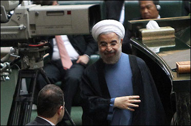 * حجت الاسلام روحانی رئیس جمهور اما در ساعت 8:35 و با 20 دقیقه پس از آغاز جلسه علنی وارد صحن شد. تاخیر روحانی به اندازه ای بود که علی لاریجانی رئیس مجلس به محض ورود وی و زمانی که روحانی مشغول سلام و احوالپرسی با نمایندگان بود از وی خواست تا در صندلی خود مستقر نشود و مستقیم پشت تریبون قرار گیرد و سخن خود را در دفاع از برنامه دولت و کابینه پیشنهادی بیان کند.