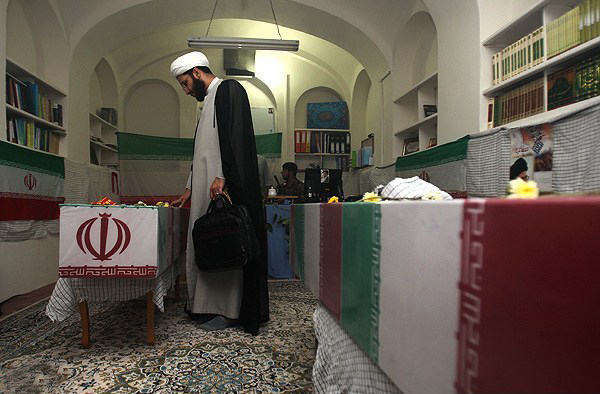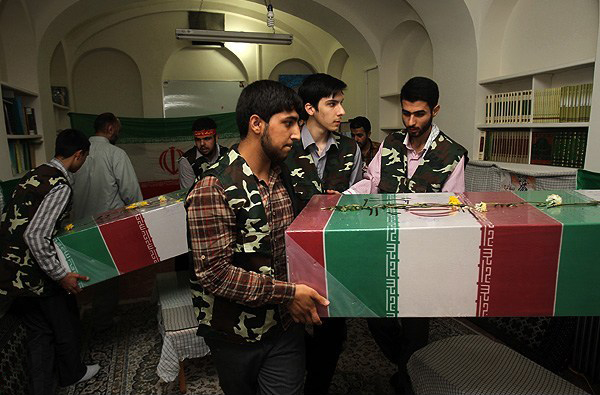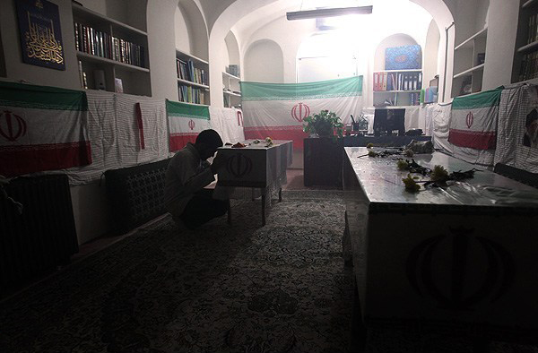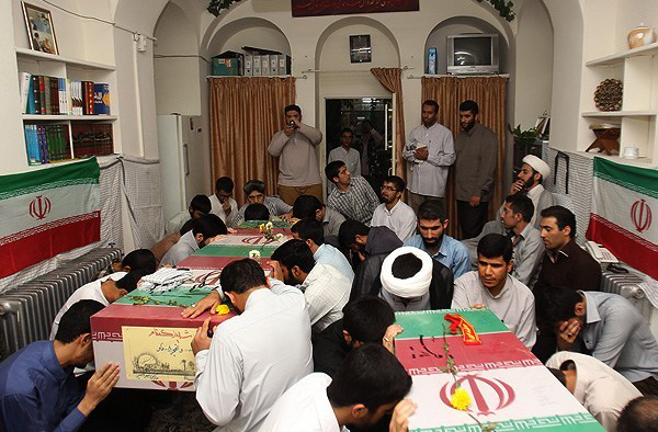تشییع دو شهید گمنام دفاع مقدس در حوزه علمیه معمار