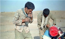 تصاویری که شاخصه آن قمقه و ظرف آب و در یک کلام عطش است و حماسه سازان این تصاویر رزمندگان گردان شهادت لشگر 27 محمد رسول الله(ص) و چهره خاک آلوده فرماندهشان شهید جواد صراف که با کلاه قرمز مقابل دوربین فیگور گرفته.