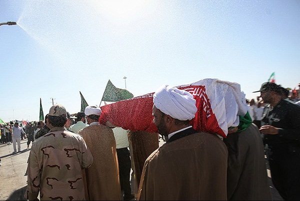 پرچم امام حسین(ع) به پیکر محمد کاسبی رسید + فیلم
