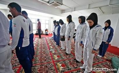 عکس/بانوان کاراته کار در نمازجماعت