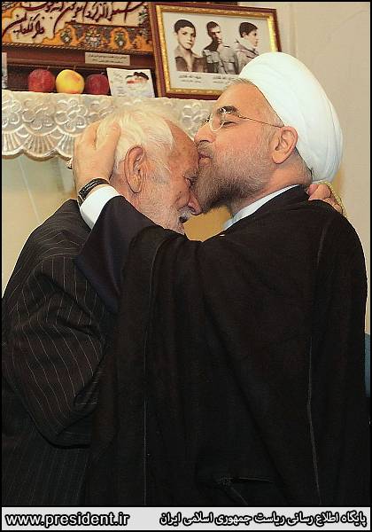 عکس/ بوسه روحانی بر چادر مادرشهید