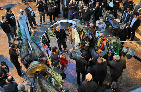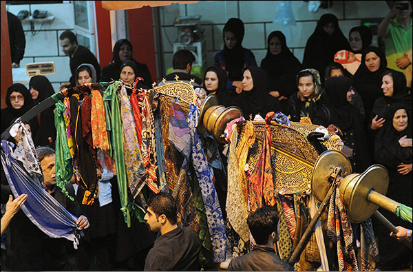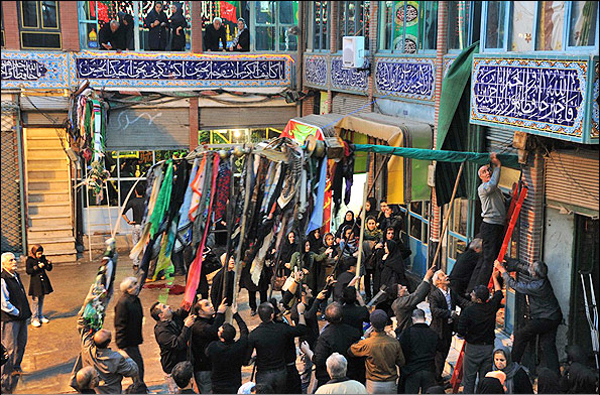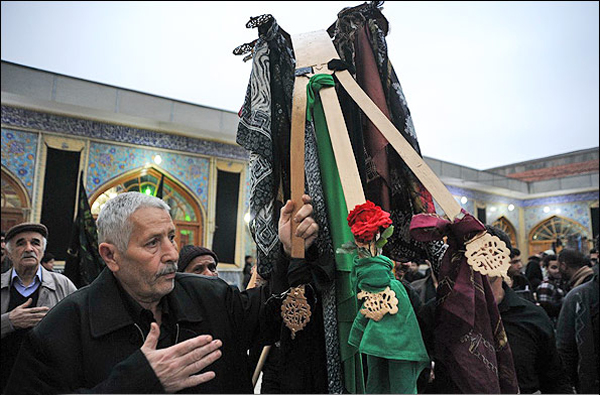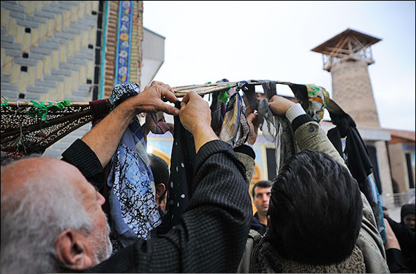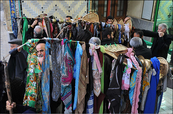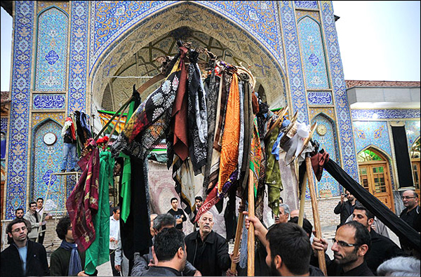علم های خود را طوق می بندند که این مراسم سنتی تحت عنوان طوق بندان یاد می شود .