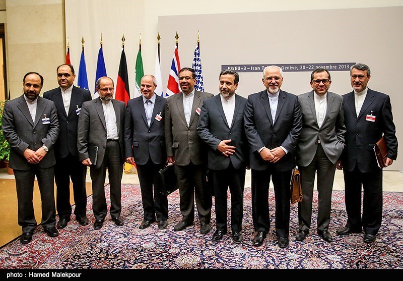 تیم مذاکره کننده ایرانی در حاشیه قرائت بیانیه مشترک ایران و 1+5 در مقر سازمان ملل.