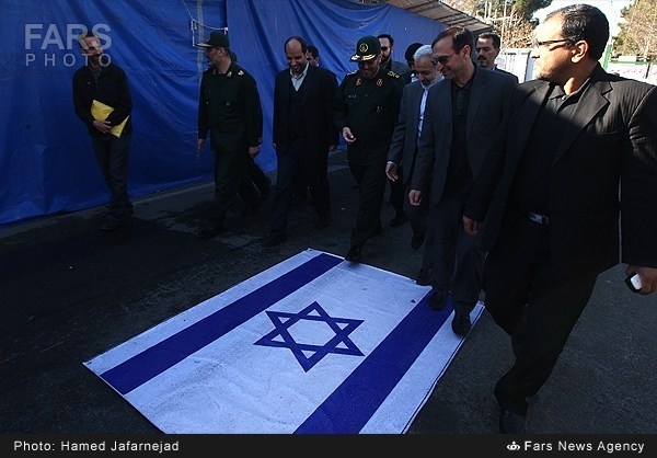 عکس/ پرچم اسرائیل زیر پای وزیر روحانی