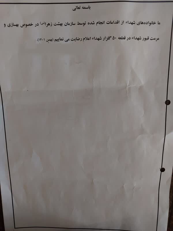 گفتنی است حالا با روی کار آمدن شهردار انقلابی و در حالی که فشار اقتصادی هر روز استخوان های مردم زحمتکش علی الخصوص خانواده شهدا و ایثارگران را خورد کرده است عده ای باز هم اینبار به نام " یکسان سازی" و با جمع آوری دوباره امضا از خانواده شهدا به جان گلزار شهدای بهشت زهرا (س) افتاده اند و مدعی هستند که دست به سنگ قبرها نمی زنند اما پر واضح است که یکسان سازی نتیجه ای جز هم سطح شدن همه قبور شهدا با سطح خاک و تبدیل شدن یک میراث فرهنگی زنده به قبرستانی بی روح نتیجه دیگری ندارد.