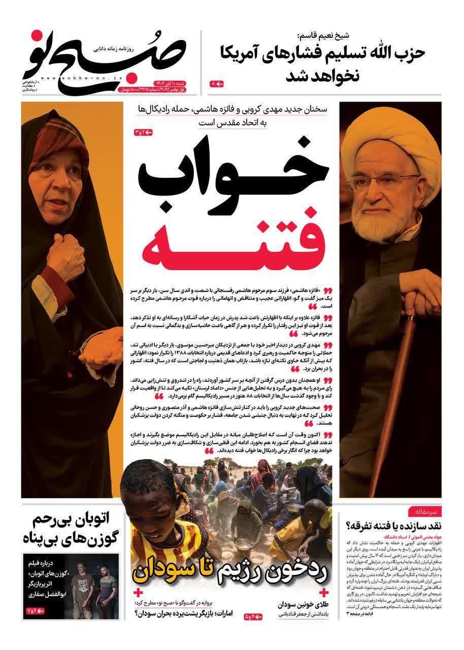 به گزارش شهدای ایران: سخنان جدید مهدی کروبی و فائزه هاشمی، حمله رادیکال ها به اتحاد مقدس است.
