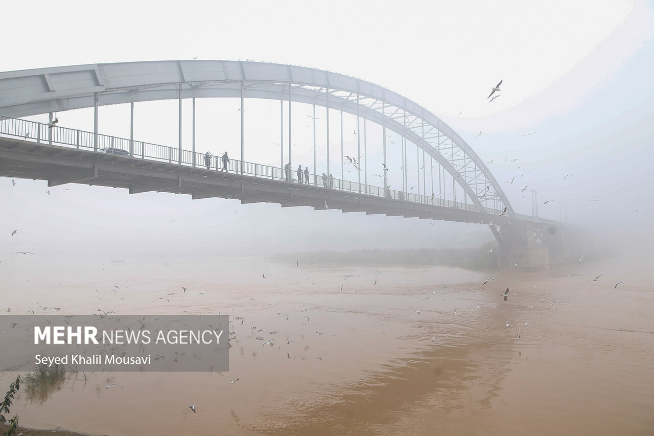 به گزارش شهدای ایران: تصویری از پل اهواز در مه را مشاهده می کنید.