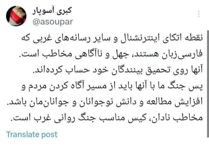 به گزارش شهدای ایران : نقطه اتکای اینتر نشنال و سایر رسانه های غربی که فارسی زبان هستند، جهل و نا آگاهی مخاطب است.