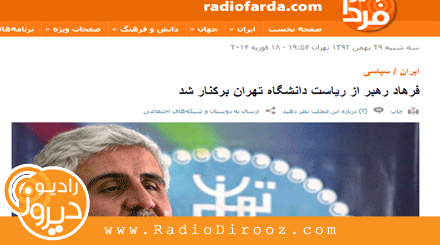 خوشحالی رادیو فردا از برکناری رییس دانشگاه تهران