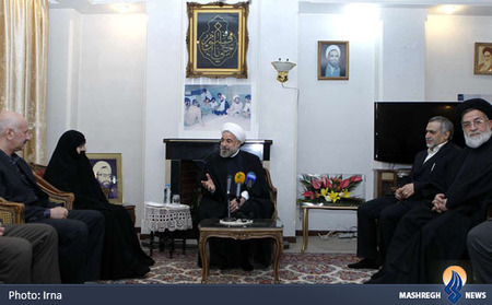 حجت الاسلام حسن روحانی رییس جمهوری در دیدار با خانواده آیت الله شیخ فضل الله محلاتی.