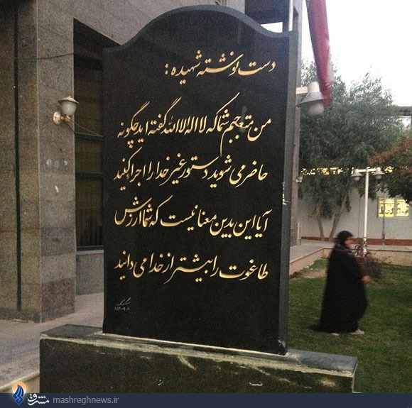 سنگ نوشته ای در بیمارستان امام خمینی (ره) دست نوشته ای از یک شهیده را روایت می کند؛ روایتی که هر روز در پیش چشم مردم مراجعه کننده به این بیمارستان دولتی است.