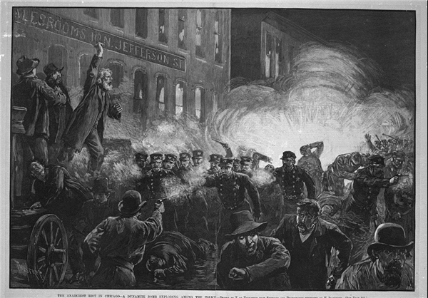 در شهر شیکاگو به عنوان یک مرکز بزرگ صنعتی علاوه بر حضور کارگران آلمانی‌زبان یک جنبش آنارشیستی متشکل از چندین هزار نفر فعال بودند که روزنامه‌‌ای به نام بار کارگران را منتشر می‌کردند.