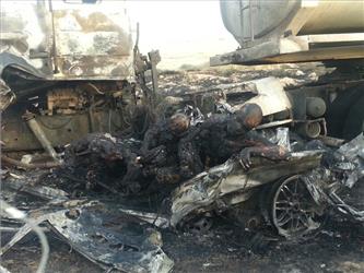 شهدای ایران:ساعت 19:00 روز گذشته بر اثر برخورد یک دستگاه سواری پژو پارس با یک دستگاه کامیون(تانکر حمل سوخت) در محور رامشیر به ماهشهر ،5 نفر در دم جان خود را از دست دادند و در شعله های آتش سوختند