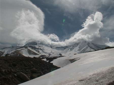بارش برف در بیست و چهارمین روز از ماه خرداد ارتفاعات شهرستان مشگین شهر در استان اردبیل را سفیدپوش کرد.