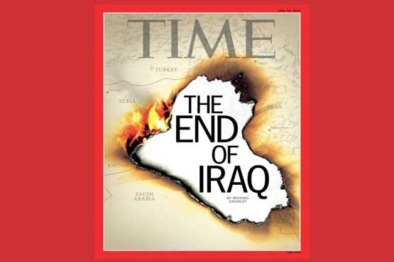 هفته نامه تایم آمریکا بر روی جلد شماره تازه خود نقشه عراق را چاپ کرده و بر روی آن به انگلیسی نوشته است«پایان عراق»